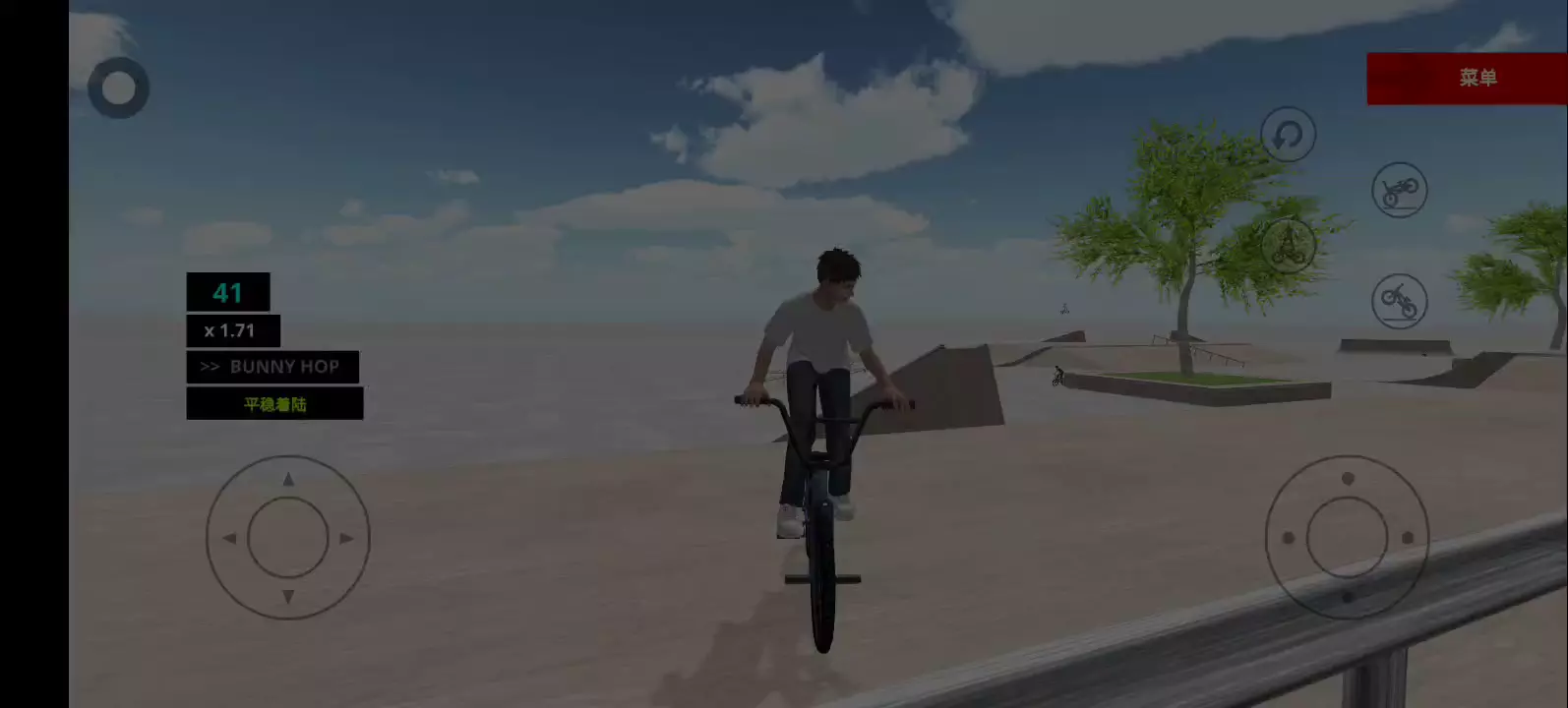 一款自行车特技竞赛游戏,场景十分丰富,玩家需要在不同的场景中骑着各种自行车做出高难度的动作 游戏特色: 1、这是一个您可以体验BMX各个景点的游戏。您可以不受任何限制地自由享受; 2、请穿上你想穿的衣服,然后去你想去的地方,做自己喜欢的花样; 3、通过使用游戏中的丰富功能,请炫耀你的风格。