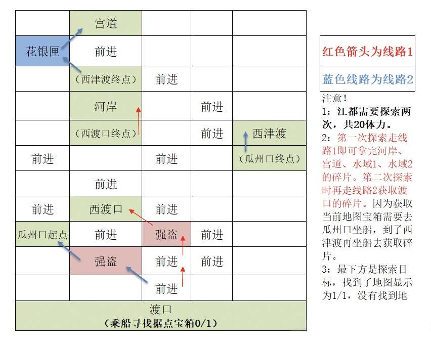 江都据点需探索2次,共计消耗20体力值。请各位殿下,注意看分解图的注解。
