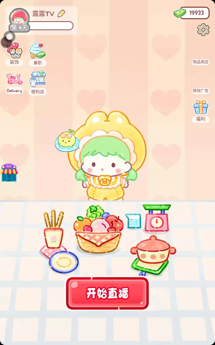 更新宠物!!! 「你进行草莓糖葫芦吃播的话,我就赞助100元。」 「脆口的声音太迷人了(°θ°)」 由于客人都被最近新开的许多糖葫芦店家抢走,曾经号称糖葫芦达人的父母因此卧病在床。 继承父母店面的主角露露开始糖葫芦吃播来宣传店面。 直到成为真正的糖葫芦达人那一天! 「今天我也要开始糖葫芦直播罗!( •o• )」 [串材料] 只有新鲜的水果的话,很难以一名吃播实况主存活下来。还要有松饼、地球软糖、青阳辣椒!利用奇特的材料制作糖葫芦吧。 [裹糖衣] 将材料串满竹签的话,就放进锅子搅动吧。唯有利用达人的秘法,才能裹出又薄又脆的糖衣。 [即时吃播] 咔哒咔哒!今天的吃播也大成功。热烈的聊天内容看起来反应也不错。看来得利用完成观众任务得到的赞助金来买新材料了! 来,准备好了吧?现在就马上挑战成为糖葫芦达人吧!