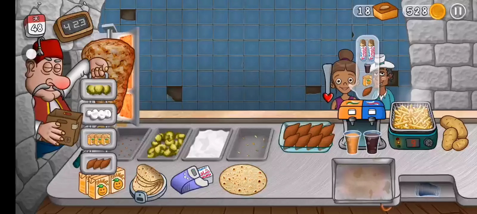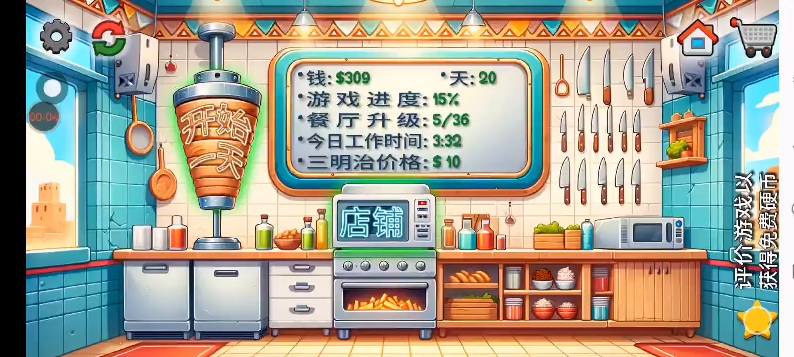 【更新日志】 1. 新的德文歌! 2. 重置保存游戏进度的方法。 3. 三明治的价格写在了黑板上。 4. 以更高的价格出售沙威玛! 5. 更少的广告。 沙威玛传奇:真正的沙威玛体验! 你是否曾经想过经营自己的沙威玛餐厅是什么样的感觉?沉浸在沙威玛传奇中,这是一款最新且最激动人心的烹饪游戏,让你进入美食世界。精确地完成顾客的订单,让你的餐厅繁荣发展。 升级你餐厅的各个方面,从最新鲜的食材和最美味的沙威玛食谱到装饰和先进的厨房设备。与竞争餐厅一较高下,争取成为城里最好的沙威玛大厨! 游戏特色 - 提供你的语言版本:游戏完全提供中文版本,包括语音和文字。 - 有趣的卡通动画:享受将你的沙威玛餐厅变得生动的动画。 - 令人兴奋的游戏玩法和无尽的挑战:享受令人兴奋的游戏玩法和无尽的挑战。 - 逼真的模拟:体验设计得尽可能接近真实餐厅的游戏中的沙威玛大厨的生活。 - 真实的沙威玛准备:从烤架上切下沙威玛并真实地包裹三明治。 - 全面的升级:用顶级设备和装饰提升你的厨房,加快服务速度,让顾客满意。 - 可定制的沙威玛:让顾客根据他们的喜好定制他们的沙威玛三明治。 - 多样化的顾客基础:为无数的顾客服务,每个人都有自己的沙威玛偏好。 你能登上顶峰,成为最终的沙威玛传奇吗?你的技能和奉献精神将是成功的关键。