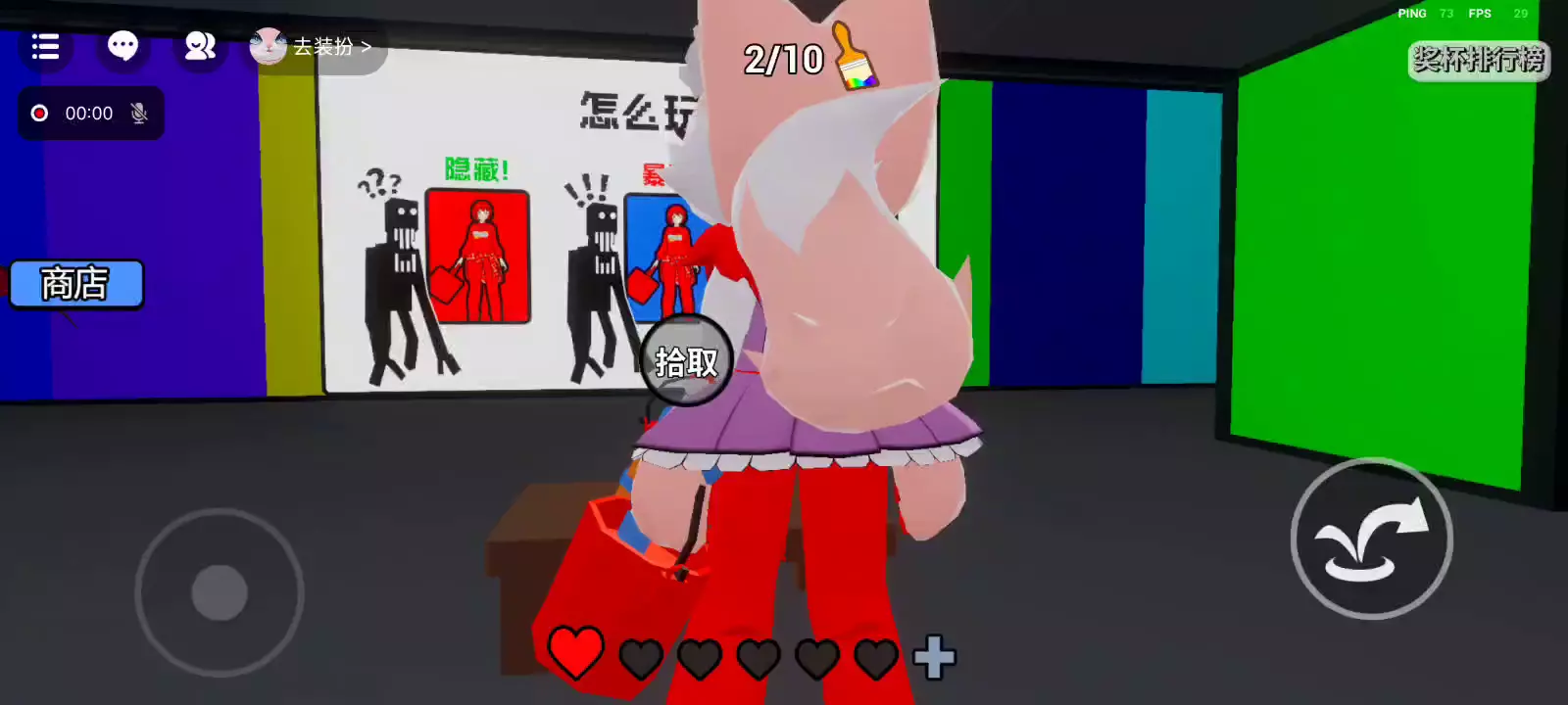 8月28日更新 修复: 商城新增更多助力道具 有概率触发两次死亡的问题 部分错别字 躲避它...雾中人! 3...2...1... 末影人在看着你! 在未能收容SCP-096之前,请不要靠近它,否则.... 站在与你相同颜色的墙边才不会被发现! 找到所有颜色即可获胜! 逃离雾中人!穿越迷宫! 挑战各具特色的跑酷关卡,辅助道具也许能够帮到你! 感谢您在初期阶段玩我们的游戏!我们将不断推出新的更新和功能,以提升您的游戏体验。敬请期待更多精彩内容!