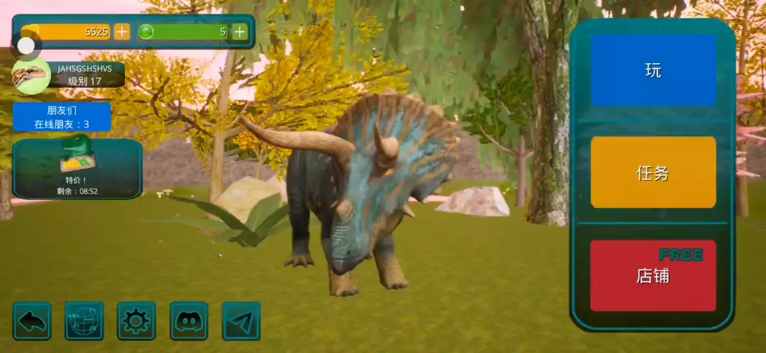 【更新:修复错误,提高稳定性】 恐龙岛是一款以侏罗纪世界为背景的逼真在线恐龙模拟器。 享受各种恐龙、逼真的图形和岛屿大地图。 选择你的恐龙并开始生存。 与您的朋友以及世界各地的玩家一起玩。 游戏中呈现了所有流行的恐龙,例如,从霸王龙、棘龙等食肉动物开始,到三角龙、甲龙等食草动物,游戏中有超过 23 种恐龙,包括飞行和游泳物种,以及所有恐龙。他们中的一些人在逼真的恐龙模拟器游戏中等待着您。