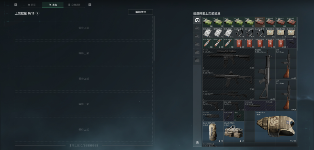 除了进入交易行购买以外,我们在行前准备阶段,也可以直接点击空缺的物资栏目,更快捷地购置战斗物资。