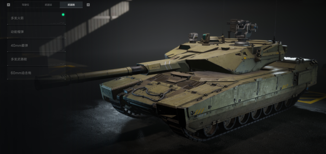 例如:M1A4主战坦克的武器舱即默认配备火箭舱,可发射多发火箭配合反载。可以改装成在近距离直射打击步兵的霰弹,或能中距离曲射对集群步兵造成巨大伤害的迫击炮。