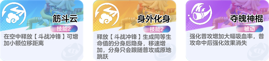 二技能的特殊点在于,孙悟空可凭借敌方单位实现二次跳跃,所以该技能通常被用来突破前排“刺杀”敌方后排C位。