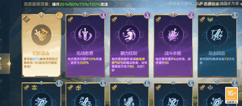 技能卡升级可获得流派效果加强,并且流派每获得1星,英雄等级加1,英雄获得相应的最大生命值提升。在英雄决斗场中推荐选择以下流派~
