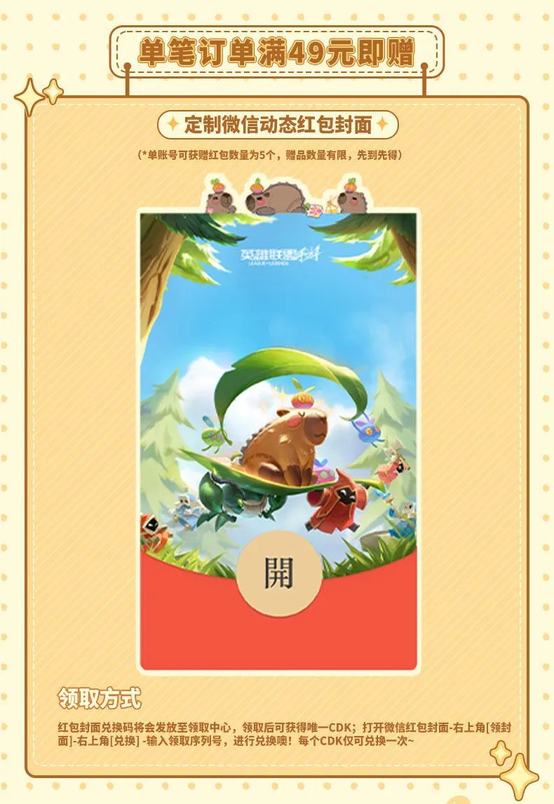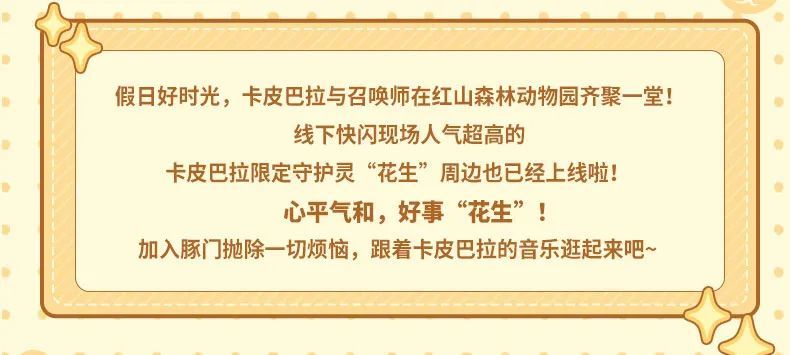 加入豚门,好事“花生”。没想到呆萌可爱的全新卡皮巴拉限定守护灵「花生」在峡谷中也拥有超高人气,喜欢它的召唤师快来把限定守护灵周边拿下吧!
