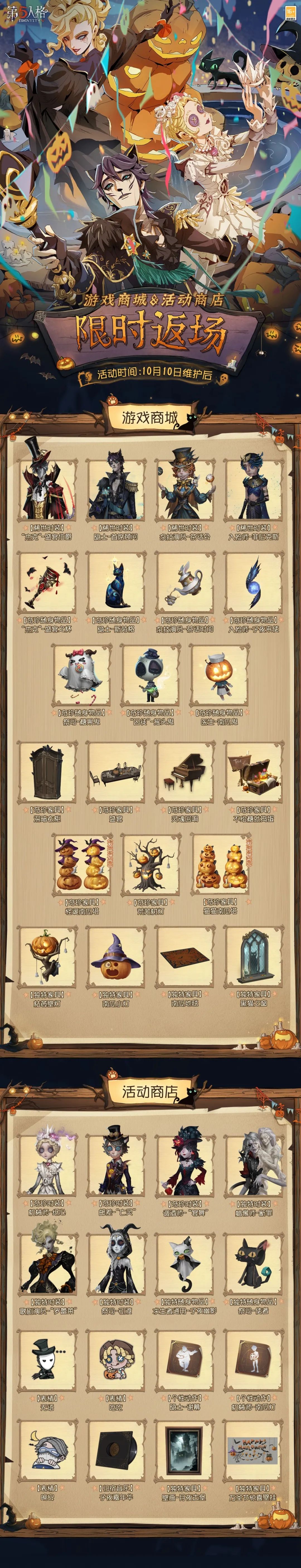游戏商城&活动商店限时返场将于10月10日维护后开启!
