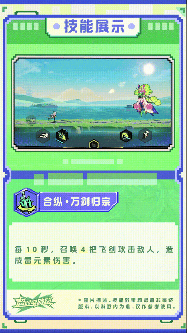 刘青瞳的【合纵·万剑归宗】不需任何操作即可触发,只需静待10秒,便有数把飞剑会出现于追光者们的身后,并开启追踪模式袭向敌方,简单便捷伤害高!