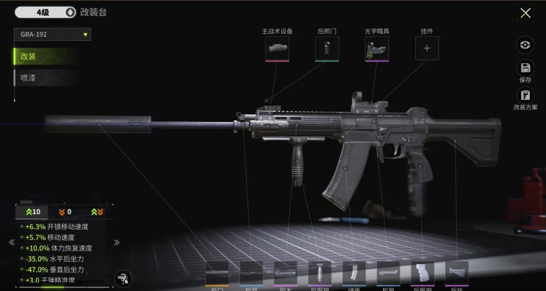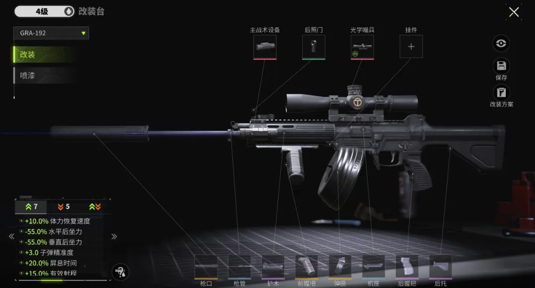 GRA-192的改装槽位较少,这导致可改装方案较少,但枪械的本身性能极其优秀,裸枪手感极佳,稳定性高。市场价30w左右即可拿下,到手即可享受尖兵武器的魅力!