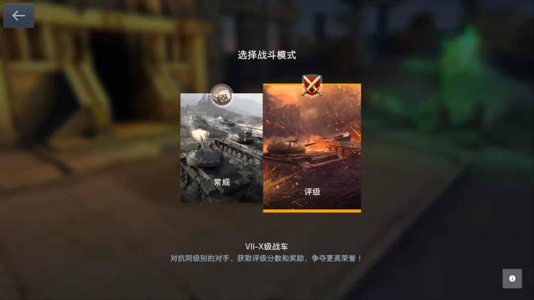 请在战斗!按钮右侧的菜单中选择评级!选择成功后进入车库点击战斗!