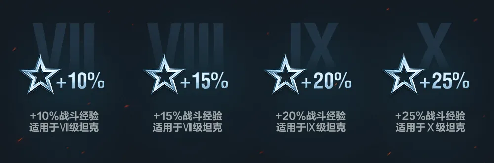 战斗经验加成取决于坦克等级: