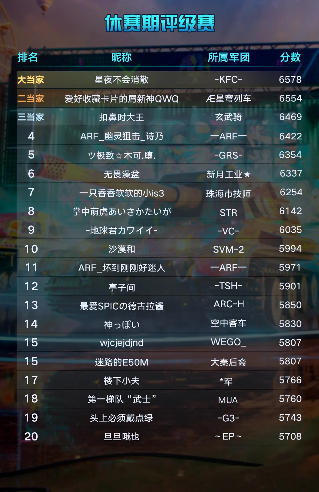 赛季4休赛期评级赛杰出玩家