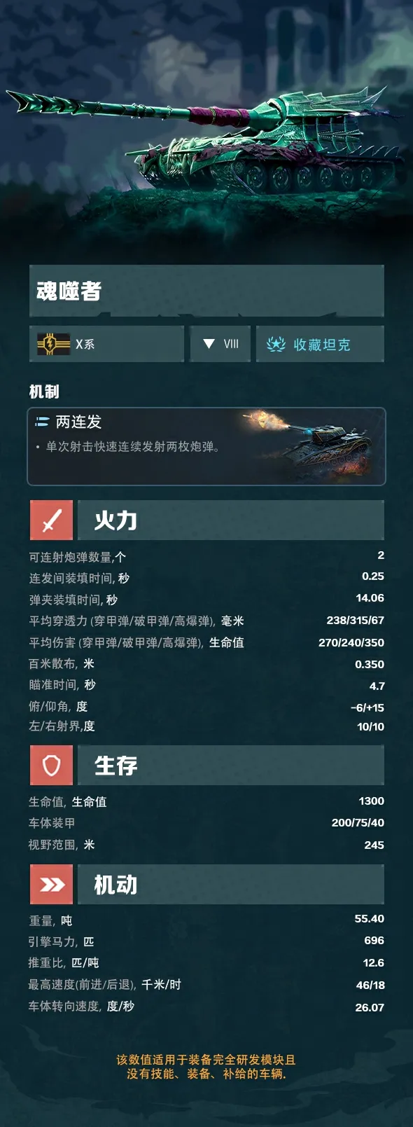全新万圣节主题坦克VIII级魂噬者强势来袭!光看它的外表就能把敌人吓得半死。装备可两连发的108毫米隐匿镰刀主炮,可轻易摧毁敌方坦克!