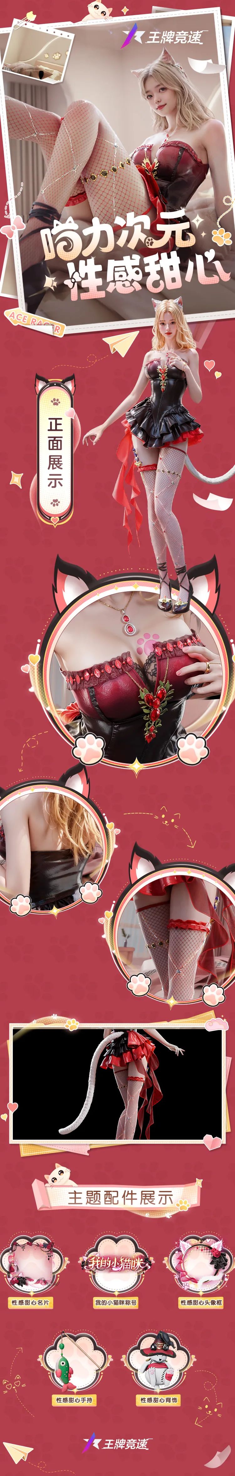 S23赛季,速度节将推出以“猫女”为主题形象的全新至臻时装。红黑修身小礼服初见惊艳,叠层裙边与飘带元素,将妩媚与甜美诠释得更加迷人,这样的“猫女”谁能不爱呢?
