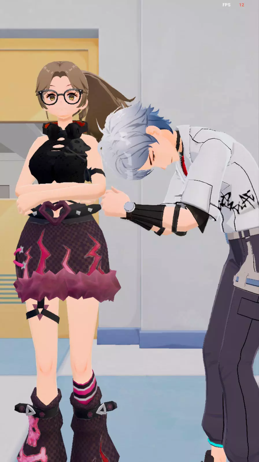 旁边是俺闺蜜,他不知道怎么换装,只能弄这个啦,他穿的有点简单,我闺蜜打的可真疼,幸好我用枕头挡住了