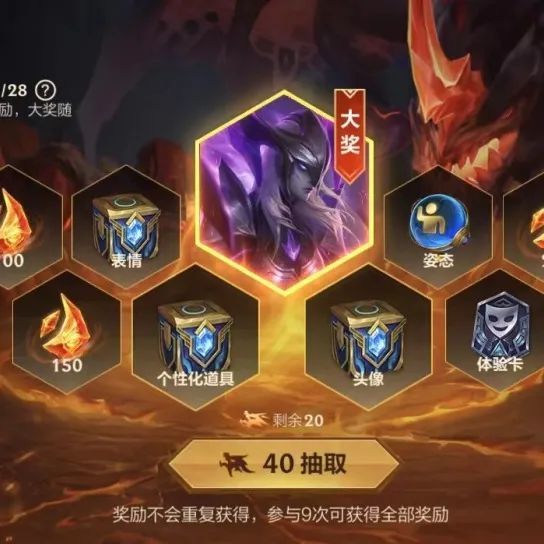 奖励:深渊之骰(3天),心花怒放,团魂卡,皮肤姿态甄选宝箱,史诗皮肤限时体验自选奖励