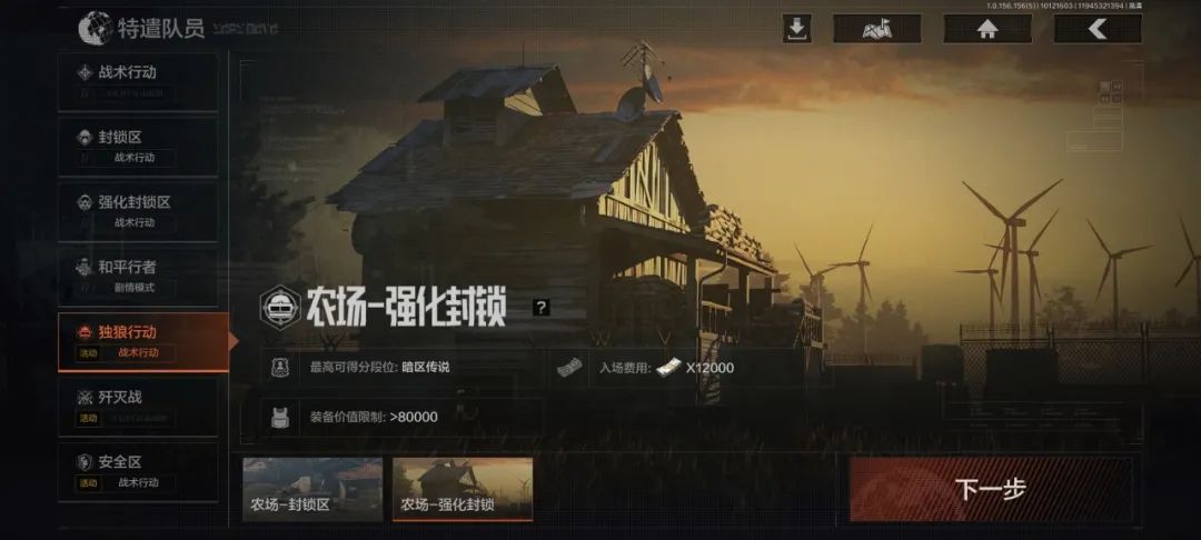 10月12日~10月24日期间,独狼行动在农场地图限时开放,先锋们可选择封锁区或强化封锁区模式以单人开始对局,带入装备价值和柯恩币消耗都与常规封锁/强封模式一致,并且支持开启段位积分。