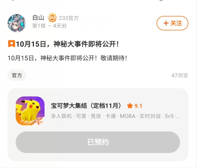 事情的经过好像是昨天官方账号发了一条推文,内容是《宝可梦大集结》手机版本正式定档11月7日,但是没过多久就直接删了,这到底是真是假呀?但是他都删贴了,感觉已经八九不离十了呀