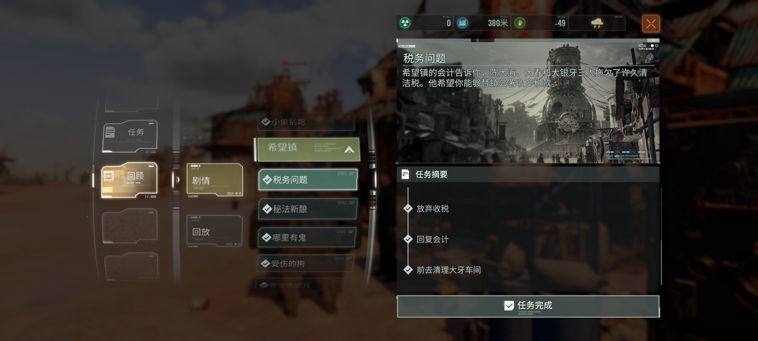 查看已完成的支线任务: