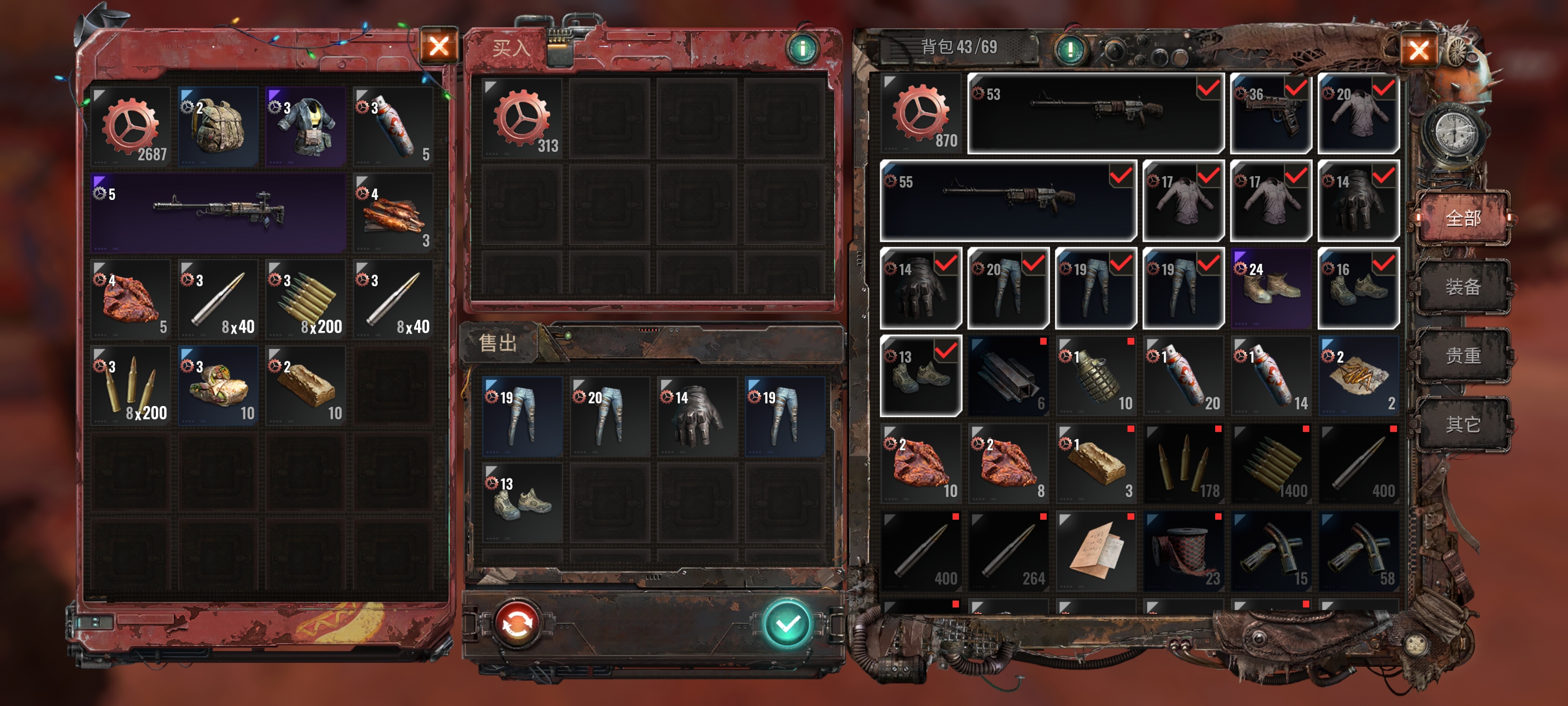 齿轮是游戏中的用来交易的货币(免费获取),有齿轮高级齿轮精工齿轮三种。