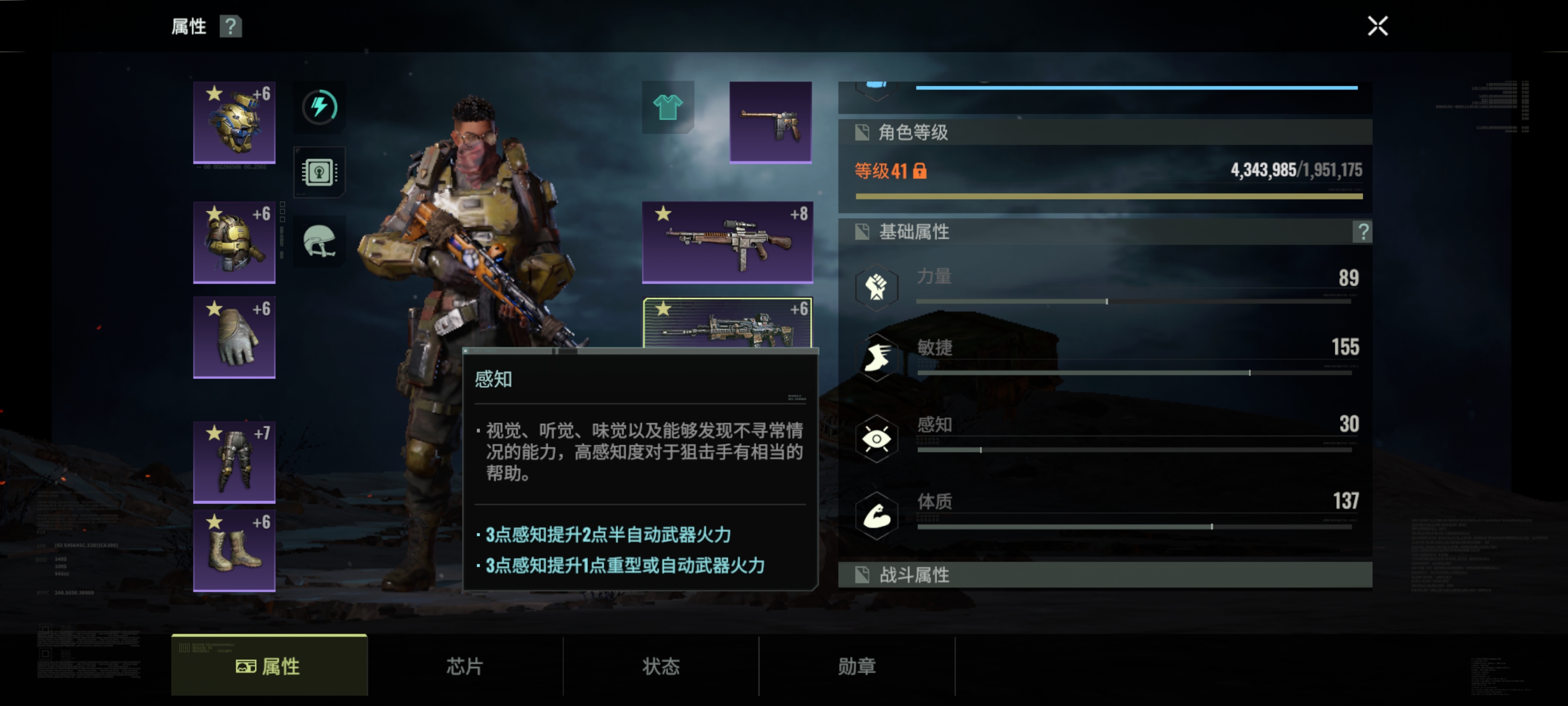 感知:主提升半自动武器火力,副提升其他武器火力。
