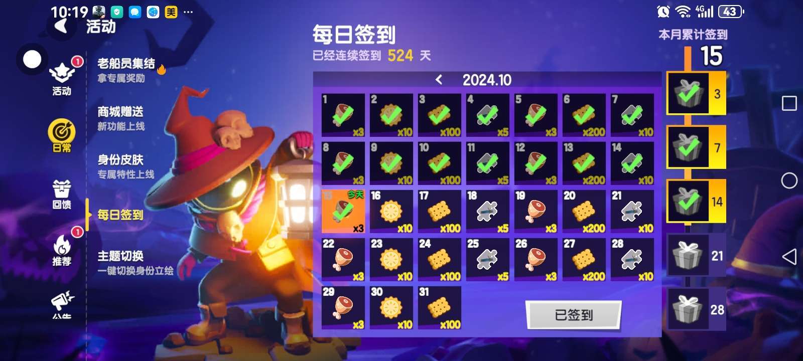 也是每天上线签到一次。