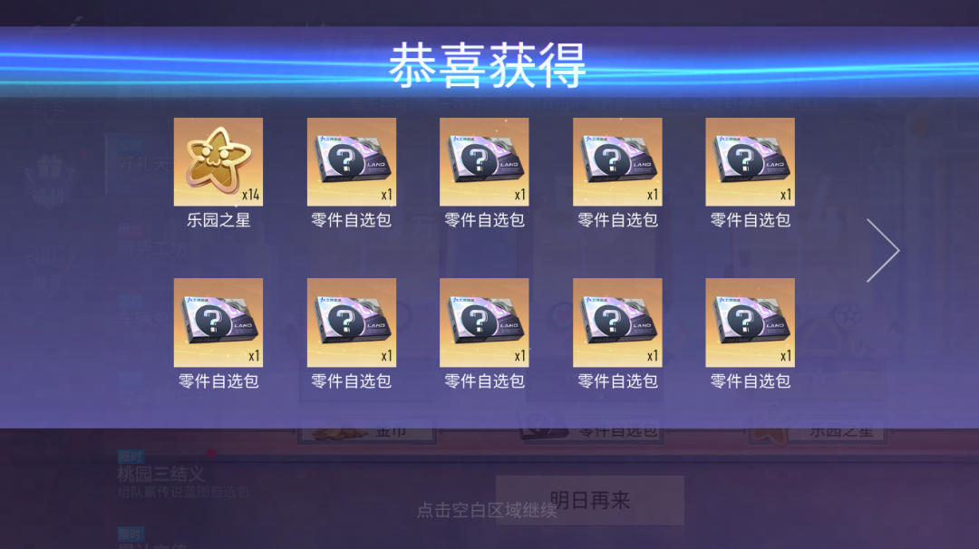 全体车手都有,听我口令:新一轮狂薅速度节福利的机会又来啦,这回我们的目标是:零件自选包!每日登录即领,直接带走数百个零件自选包轻轻松松~