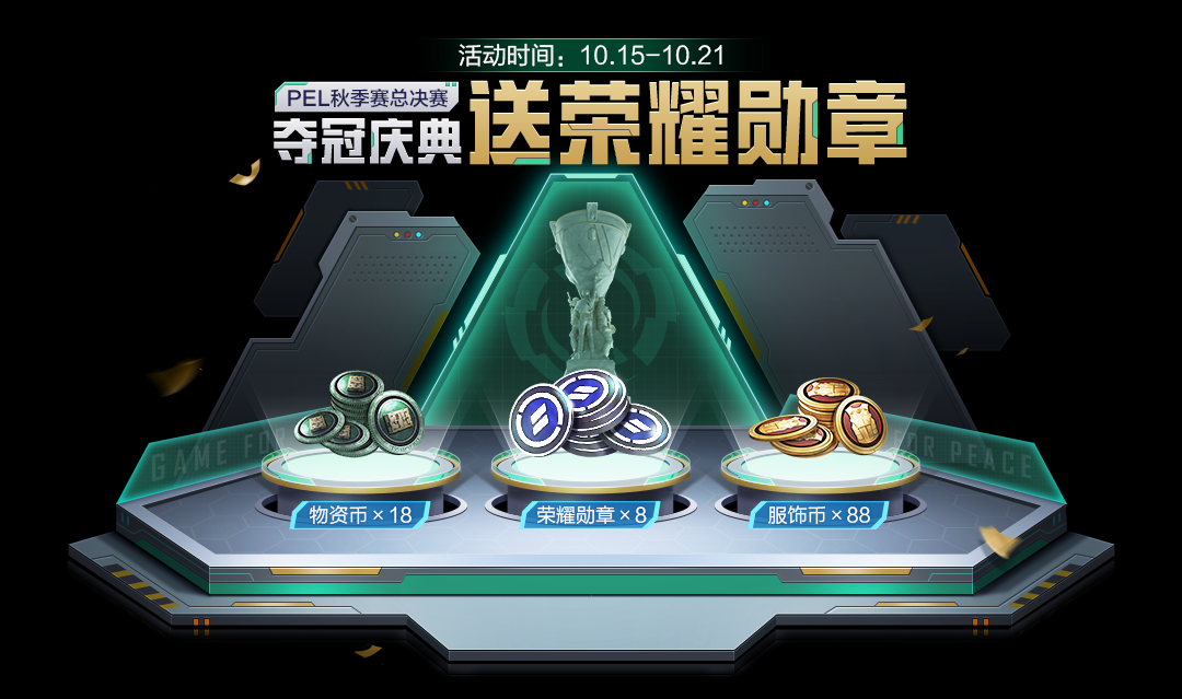 荣耀勋章、物资币、服饰币等冠军奖励!