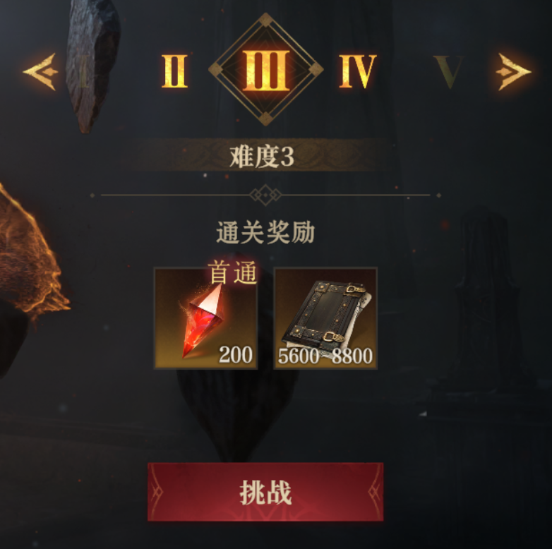 万变迷域共有I—V五种难度,首次完整通关每个难度后都会额外获得龙髓石奖励。