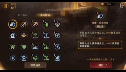 ● 强化祭坛:消耗迷域金币升级祝福,进入该事件后首次升级任意祝福均免费