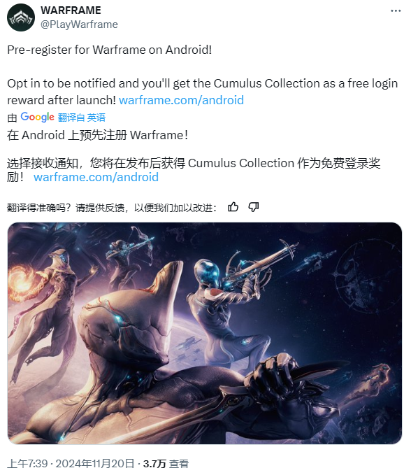 《星际战甲》手游现已在海外开启安卓正式预注册