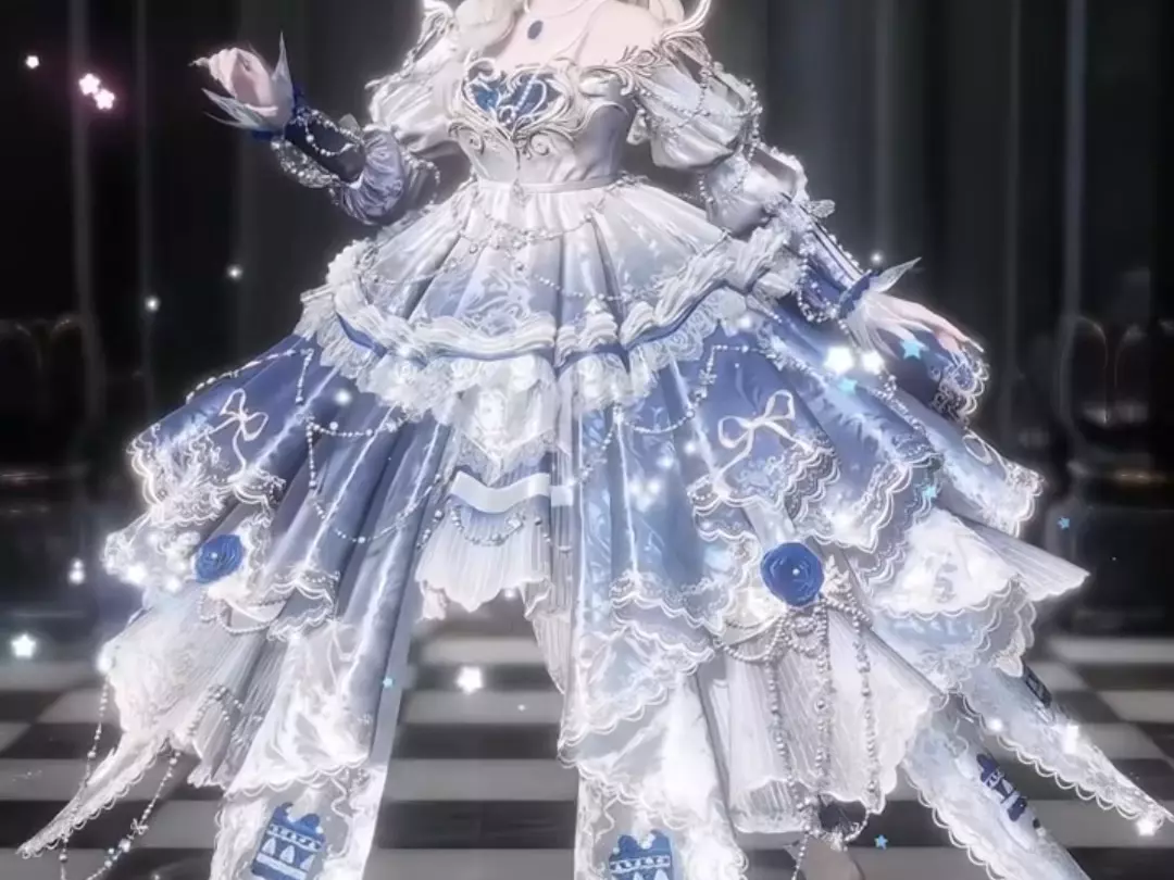 这是#233派对的虚拟角色今日穿搭OOTD,展示了一位身着米黄色洛丽塔风格套装的虚拟少女,精致华丽的造型尽显时尚感,堪称233最靓的仔。