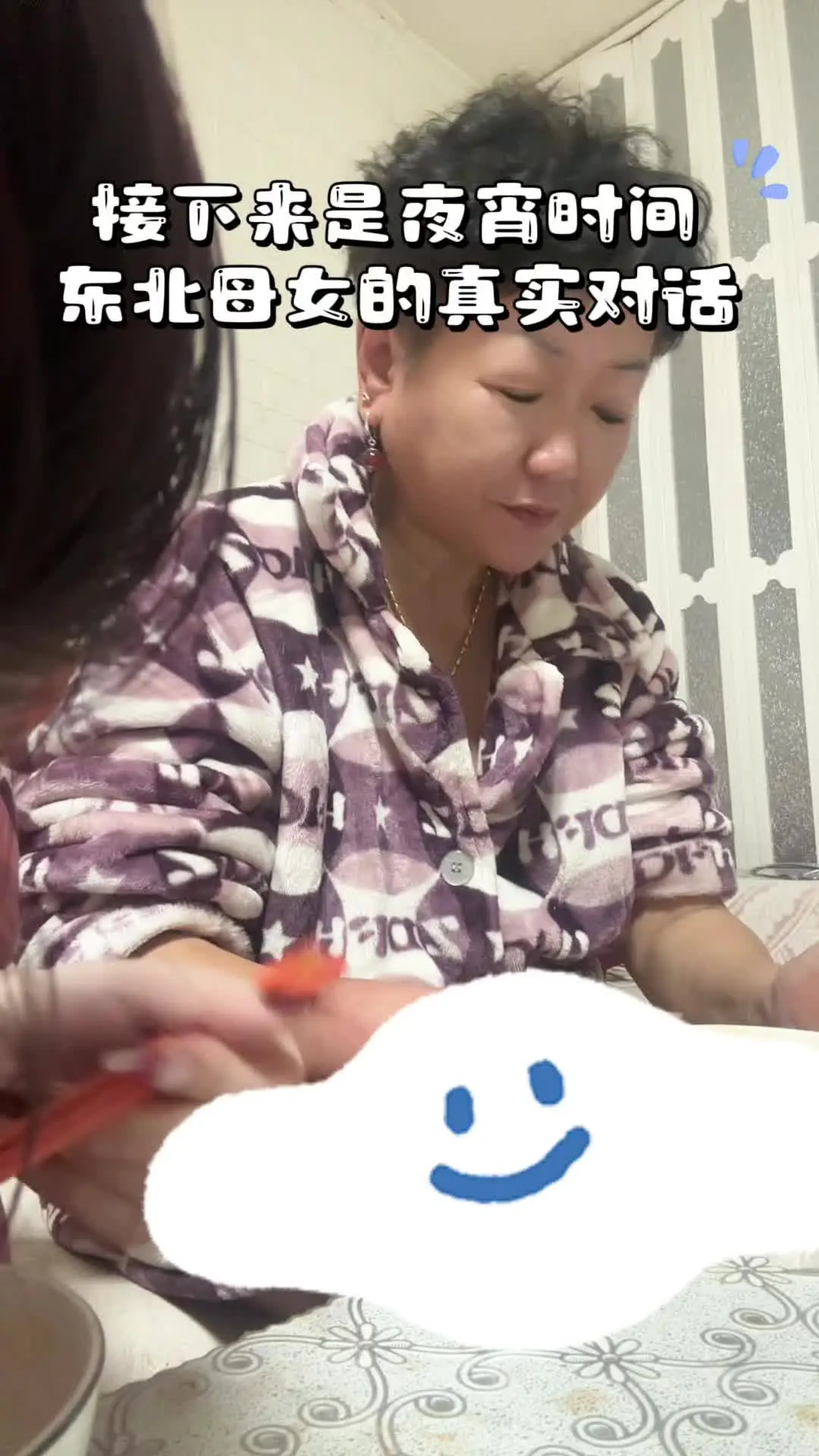 前提是夜宵我爸快回来了 怕两袋面不够吃 我俩紧赶慢赶的吃 她穿我爸大棉睡衣就开始 面对镜头还有点紧张 平时她吃饭真的很香!#吃播