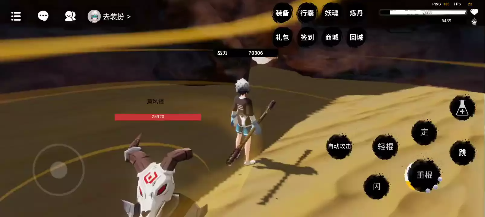 你将扮演天命人,手持金箍棒,身披锁子黄金甲,抓妖降魔,重游西天。 【更新:1、天宫试炼塔挑战模式; 2、上香获得属性收益;3、地图隐藏宝箱;4、在线和签到福利升级;5、增加自动攻击;6、排行榜单】