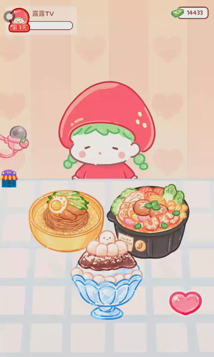 更新宠物!!! 「你进行草莓糖葫芦吃播的话,我就赞助100元。」 「脆口的声音太迷人了(°θ°)」 由于客人都被最近新开的许多糖葫芦店家抢走,曾经号称糖葫芦达人的父母因此卧病在床。 继承父母店面的主角露露开始糖葫芦吃播来宣传店面。 直到成为真正的糖葫芦达人那一天! 「今天我也要开始糖葫芦直播罗!( •o• )」 [串材料] 只有新鲜的水果的话,很难以一名吃播实况主存活下来。还要有松饼、地球软糖、青阳辣椒!利用奇特的材料制作糖葫芦吧。 [裹糖衣] 将材料串满竹签的话,就放进锅子搅动吧。唯有利用达人的秘法,才能裹出又薄又脆的糖衣。 [即时吃播] 咔哒咔哒!今天的吃播也大成功。热烈的聊天内容看起来反应也不错。看来得利用完成观众任务得到的赞助金来买新材料了! 来,准备好了吧?现在就马上挑战成为糖葫芦达人吧!