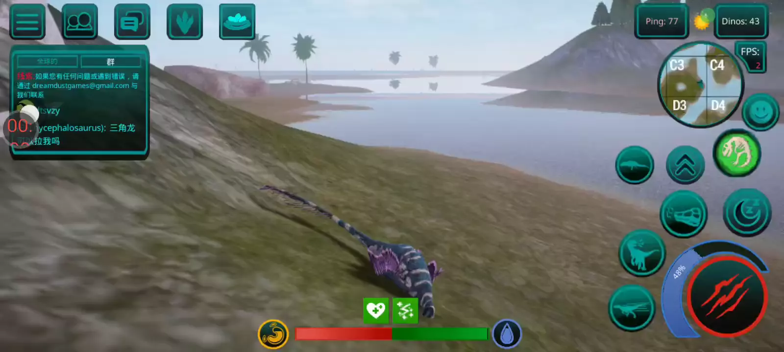 【更新:修复错误,提高稳定性】 恐龙岛是一款以侏罗纪世界为背景的逼真在线恐龙模拟器。 享受各种恐龙、逼真的图形和岛屿大地图。 选择你的恐龙并开始生存。 与您的朋友以及世界各地的玩家一起玩。 游戏中呈现了所有流行的恐龙,例如,从霸王龙、棘龙等食肉动物开始,到三角龙、甲龙等食草动物,游戏中有超过 23 种恐龙,包括飞行和游泳物种,以及所有恐龙。他们中的一些人在逼真的恐龙模拟器游戏中等待着您。