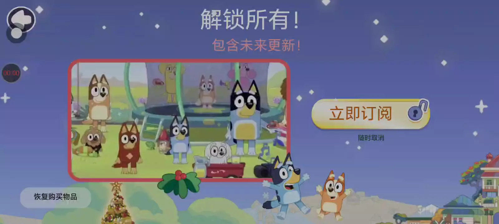 在布鲁伊的房子里探索、想象、创造和玩耍。 有好多的事情可以做。 快来和布鲁伊、她的朋友还有家人一起玩! 趣味横生、简单易玩、平静安心的学龄前和幼儿学习游戏,男女咸宜,适合各年龄层的孩童。 父母也可以一起玩! 探索 像电视节目一样,在家中的各个地方探索、玩耍! 你能找到藏起来的所有惊喜吗? 想象 每个房间都包含深刻而极具想象力的玩法。就好像布鲁伊一样,只要发挥想象力,万事都有可能! 宾果、班底特、奇莉,还有布鲁伊的所有朋友和家人都在这里,随时可以加入欢乐游戏 创造 布鲁伊的屋子就是你的虚拟游乐套装,欢乐就在你的指尖!点击、拖动,和一切进行互动吧。 在厨房里烹制最喜欢的食谱,在后院帮忙建造披萨烤炉,或者开一场茶会 – 想创造什么都行! 游玩 来玩皮球不落地的游戏,在蹦床上蹦蹦跳跳,在满是泡泡的浴缸中嬉戏,或在后院荡秋千 – 可能性无穷无尽! 安全且适合儿童 以学龄前、幼儿园和小学的男女儿童最喜欢的 YouTube、YouTube Kids 和 Disney+ 节目为基础,专为他们设计的趣味儿童游戏。 这款交互式布鲁伊游戏简单又好玩,适合 2-9 岁的儿童。 关于布鲁伊 布鲁伊是一只六岁的可