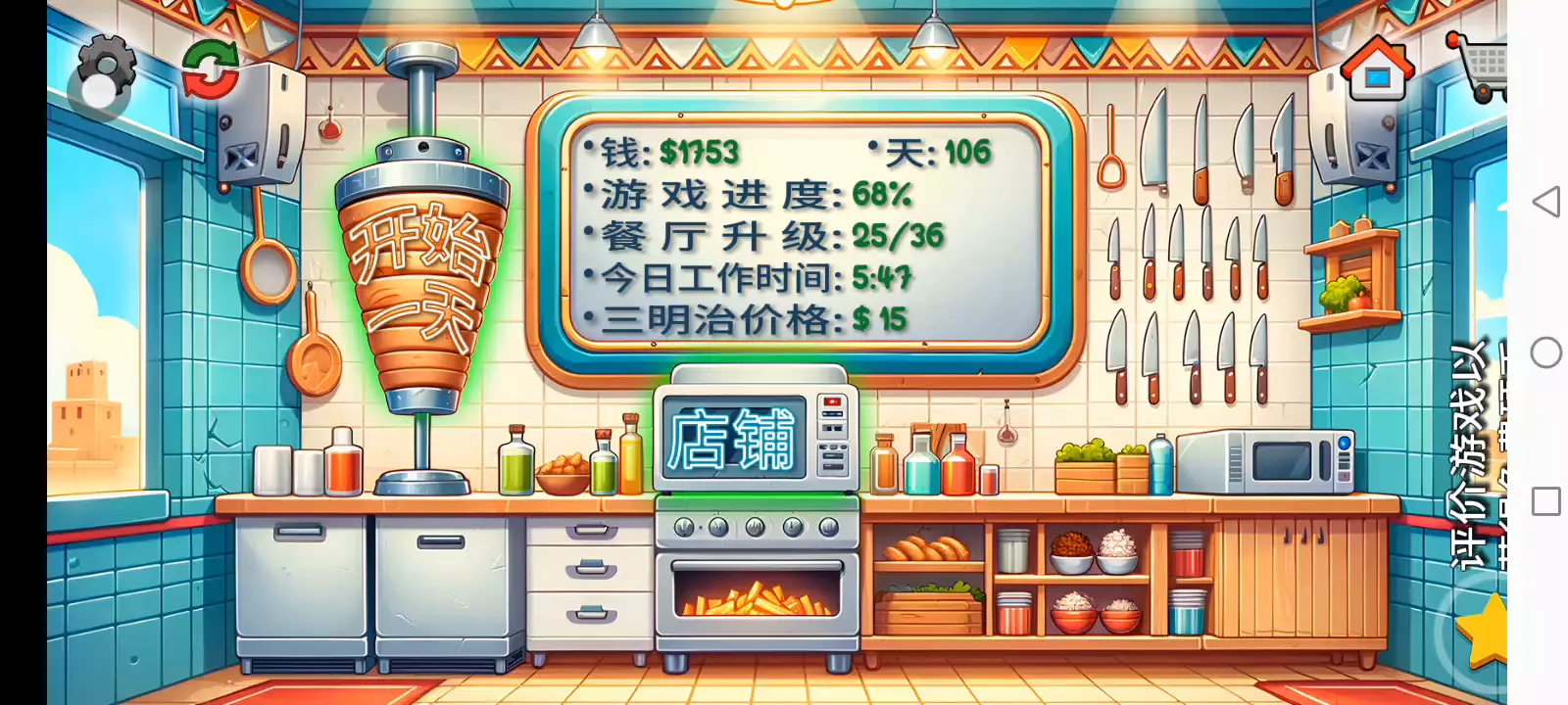 【更新日志】 1. 重置保存游戏进度的方法。 2. 永远不要错过绿袋子的奖品!(修复) 3. 三明治的价格写在了黑板上。 4. 以更高的价格出售沙威玛! 5. 更少的广告。 沙威玛传奇:真正的沙威玛体验! 你是否曾经想过经营自己的沙威玛餐厅是什么样的感觉?沉浸在沙威玛传奇中,这是一款最新且最激动人心的烹饪游戏,让你进入美食世界。精确地完成顾客的订单,让你的餐厅繁荣发展。 升级你餐厅的各个方面,从最新鲜的食材和最美味的沙威玛食谱到装饰和先进的厨房设备。与竞争餐厅一较高下,争取成为城里最好的沙威玛大厨! 游戏特色 - 提供你的语言版本:游戏完全提供中文版本,包括语音和文字。 - 有趣的卡通动画:享受将你的沙威玛餐厅变得生动的动画。 - 令人兴奋的游戏玩法和无尽的挑战:享受令人兴奋的游戏玩法和无尽的挑战。 - 逼真的模拟:体验设计得尽可能接近真实餐厅的游戏中的沙威玛大厨的生活。 - 真实的沙威玛准备:从烤架上切下沙威玛并真实地包裹三明治。 - 全面的升级:用顶级设备和装饰提升你的厨房,加快服务速度,让顾客满意。 - 可定制的沙威玛:让顾客根据他们的喜好定制他们的沙威玛三明治。 - 多样化的顾客基础:为无数的顾客服务,每个人都有自己的沙威玛偏好。 你能登上顶峰,成为最终的沙威玛传奇吗?你的技能和奉献精神将是成功的关键。