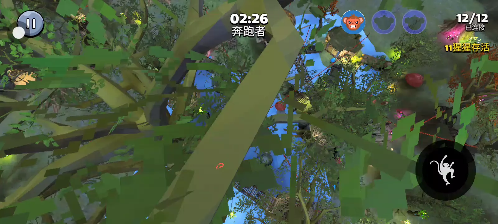 您可以扮演猎人大猩猩或奔跑猴子。在密室躲藏和寻找,尽可能多地生存。如果您是大猩猩猎人,则必须在 3 分钟内寻找并抓住所有其他奔跑者。如果您是奔跑者,则必须在不被抓住的情况下生存隐藏 3 分钟,如果您被抓住,则成为大猩猩猎人。