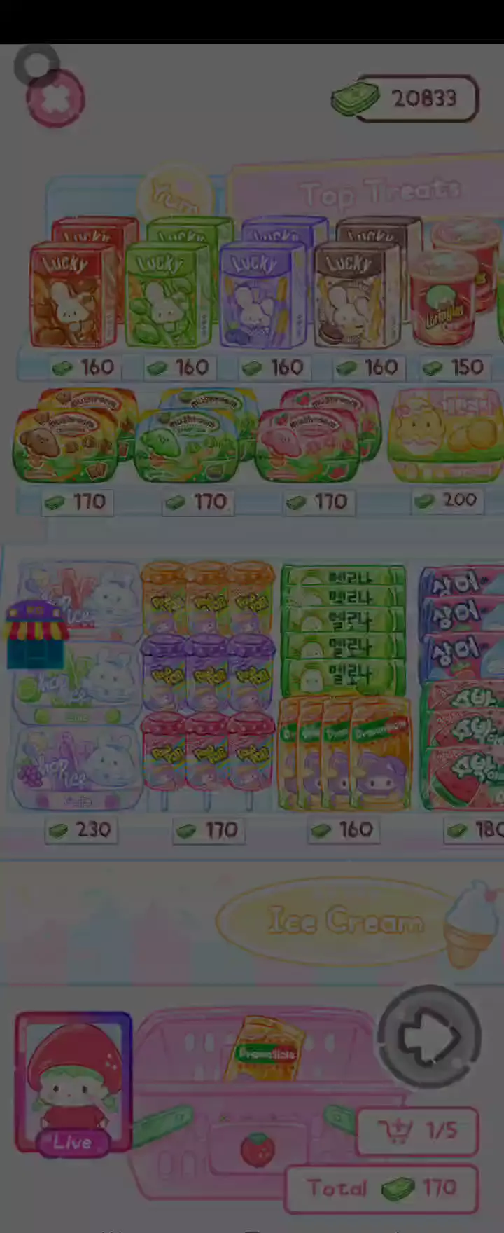 更新宠物!!! 「你进行草莓糖葫芦吃播的话,我就赞助100元。」 「脆口的声音太迷人了(°θ°)」 由于客人都被最近新开的许多糖葫芦店家抢走,曾经号称糖葫芦达人的父母因此卧病在床。 继承父母店面的主角露露开始糖葫芦吃播来宣传店面。 直到成为真正的糖葫芦达人那一天! 「今天我也要开始糖葫芦直播罗!( •o• )」 [串材料] 只有新鲜的水果的话,很难以一名吃播实况主存活下来。还要有松饼、地球软糖、青阳辣椒!利用奇特的材料制作糖葫芦吧。 [裹糖衣] 将材料串满竹签的话,就放进锅子搅动吧。唯有利用达人的秘法,才能裹出又薄又脆的糖衣。 [即时吃播] 咔哒咔哒!今天的吃播也大成功。热烈的聊天内容看起来反应也不错。看来得利用完成观众任务得到的赞助金来买新材料了! 来,准备好了吧?现在就马上挑战成为糖葫芦达人吧!