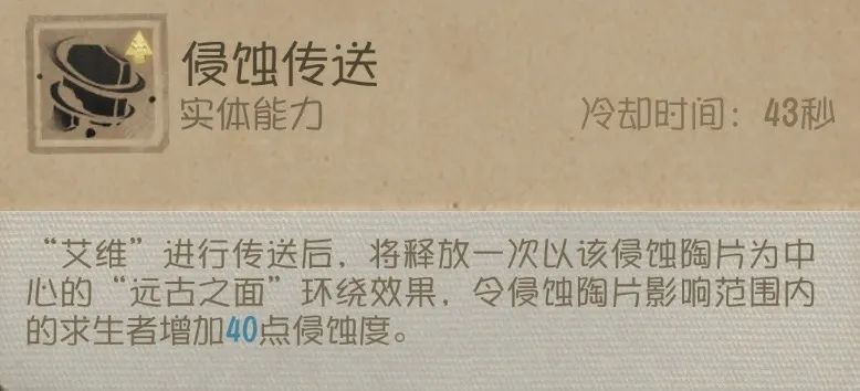 “艾维”传送后令在侵蚀陶片影响范围内的求生者增加40点侵蚀度。