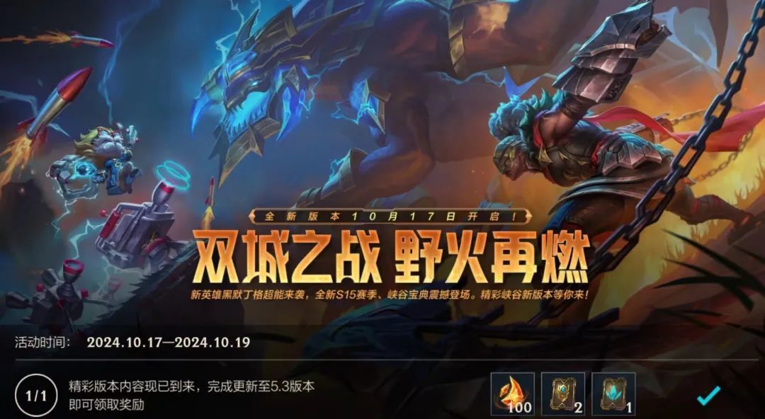 双城之战,野火再燃。5.3新版本“双城之战”今日开启,排位模式迎来优化,战场体验全新升级!