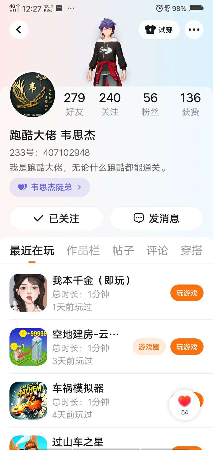 跑酷大佬 韦思杰(号已盗)