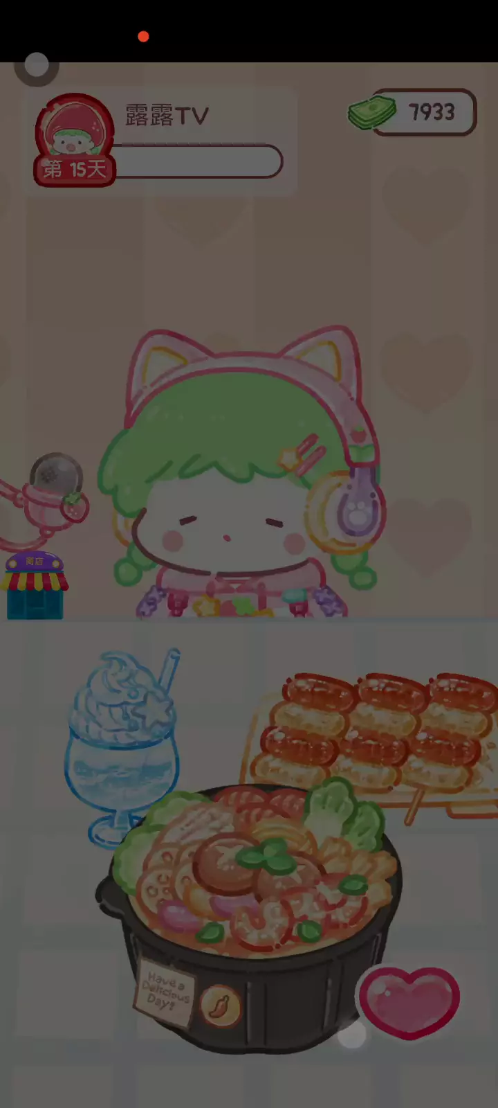 更新宠物!!! 「你进行草莓糖葫芦吃播的话,我就赞助100元。」 「脆口的声音太迷人了(°θ°)」 由于客人都被最近新开的许多糖葫芦店家抢走,曾经号称糖葫芦达人的父母因此卧病在床。 继承父母店面的主角露露开始糖葫芦吃播来宣传店面。 直到成为真正的糖葫芦达人那一天! 「今天我也要开始糖葫芦直播罗!( •o• )」 [串材料] 只有新鲜的水果的话,很难以一名吃播实况主存活下来。还要有松饼、地球软糖、青阳辣椒!利用奇特的材料制作糖葫芦吧。 [裹糖衣] 将材料串满竹签的话,就放进锅子搅动吧。唯有利用达人的秘法,才能裹出又薄又脆的糖衣。 [即时吃播] 咔哒咔哒!今天的吃播也大成功。热烈的聊天内容看起来反应也不错。看来得利用完成观众任务得到的赞助金来买新材料了! 来,准备好了吧?现在就马上挑战成为糖葫芦达人吧!