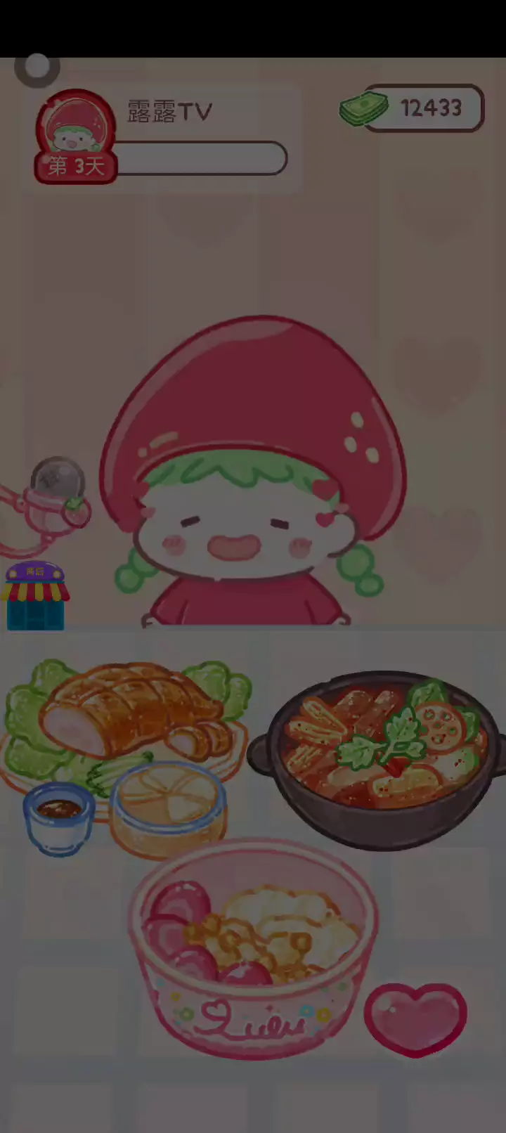 更新宠物!!! 「你进行草莓糖葫芦吃播的话,我就赞助100元。」 「脆口的声音太迷人了(°θ°)」 由于客人都被最近新开的许多糖葫芦店家抢走,曾经号称糖葫芦达人的父母因此卧病在床。 继承父母店面的主角露露开始糖葫芦吃播来宣传店面。 直到成为真正的糖葫芦达人那一天! 「今天我也要开始糖葫芦直播罗!( •o• )」 [串材料] 只有新鲜的水果的话,很难以一名吃播实况主存活下来。还要有松饼、地球软糖、青阳辣椒!利用奇特的材料制作糖葫芦吧。 [裹糖衣] 将材料串满竹签的话,就放进锅子搅动吧。唯有利用达人的秘法,才能裹出又薄又脆的糖衣。 [即时吃播] 咔哒咔哒!今天的吃播也大成功。热烈的聊天内容看起来反应也不错。看来得利用完成观众任务得到的赞助金来买新材料了! 来,准备好了吧?现在就马上挑战成为糖葫芦达人吧!