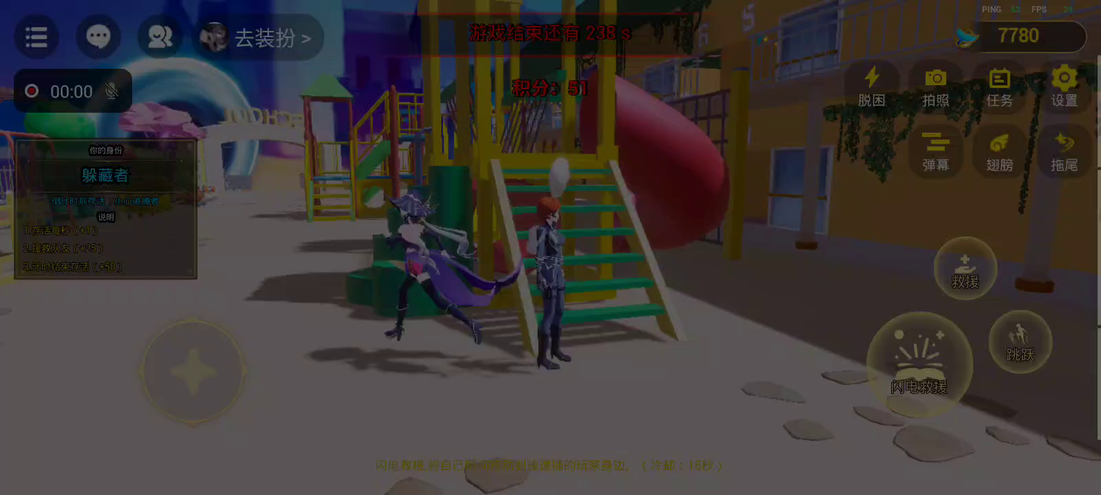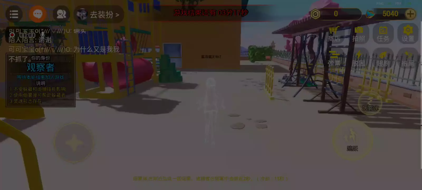 在《幼稚园躲猫猫》中,玩家将体验到一场跨越时空的激烈对抗。游戏设定了两个对立的角色阵营:躲藏者和追捕者。躲藏者们拥有各种超能力,如任意门、烟雾弹、延缓术等,可以利用这些技能躲避追捕者的追击。而追捕者则是一群怪异的生物,有着各自独特的追击能力,如熊拳、爪击、螺旋斩等,他们的目标是找到并捕获所有的躲藏者。 在游戏中,玩家可以选择扮演躲藏者或追捕者,通过巧妙运用角色的技能和策略,来击败对手或逃脱追击。躲藏者们需要尽可能地利用地形和技能来躲避追捕者的搜索,而追捕者则需要猎取所有躲藏者,不留一丝遗漏。 《幼稚园躲猫猫》融合了动作、策略和悬疑元素,带给玩家一场紧张刺激的角逐之旅。你准备好挑战自己的反应速度和智慧了吗?快来加入这场超能力对决,展现你的技能,决出胜负吧! (也欢迎体验幽灵谷地图的同类游戏——超能躲猫猫)