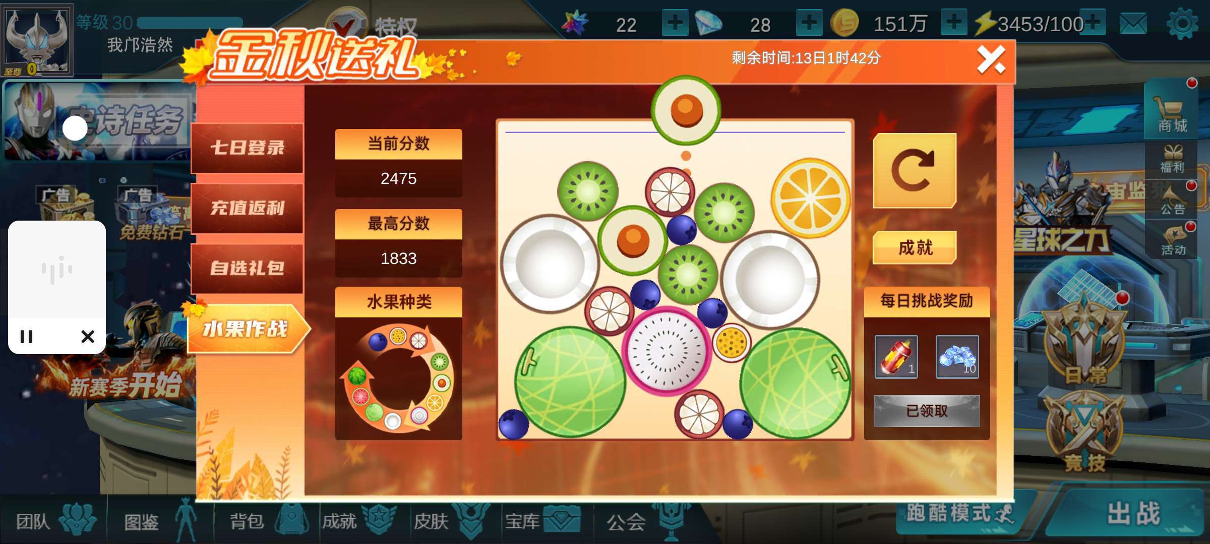 个人战力也突破,开心开心😁