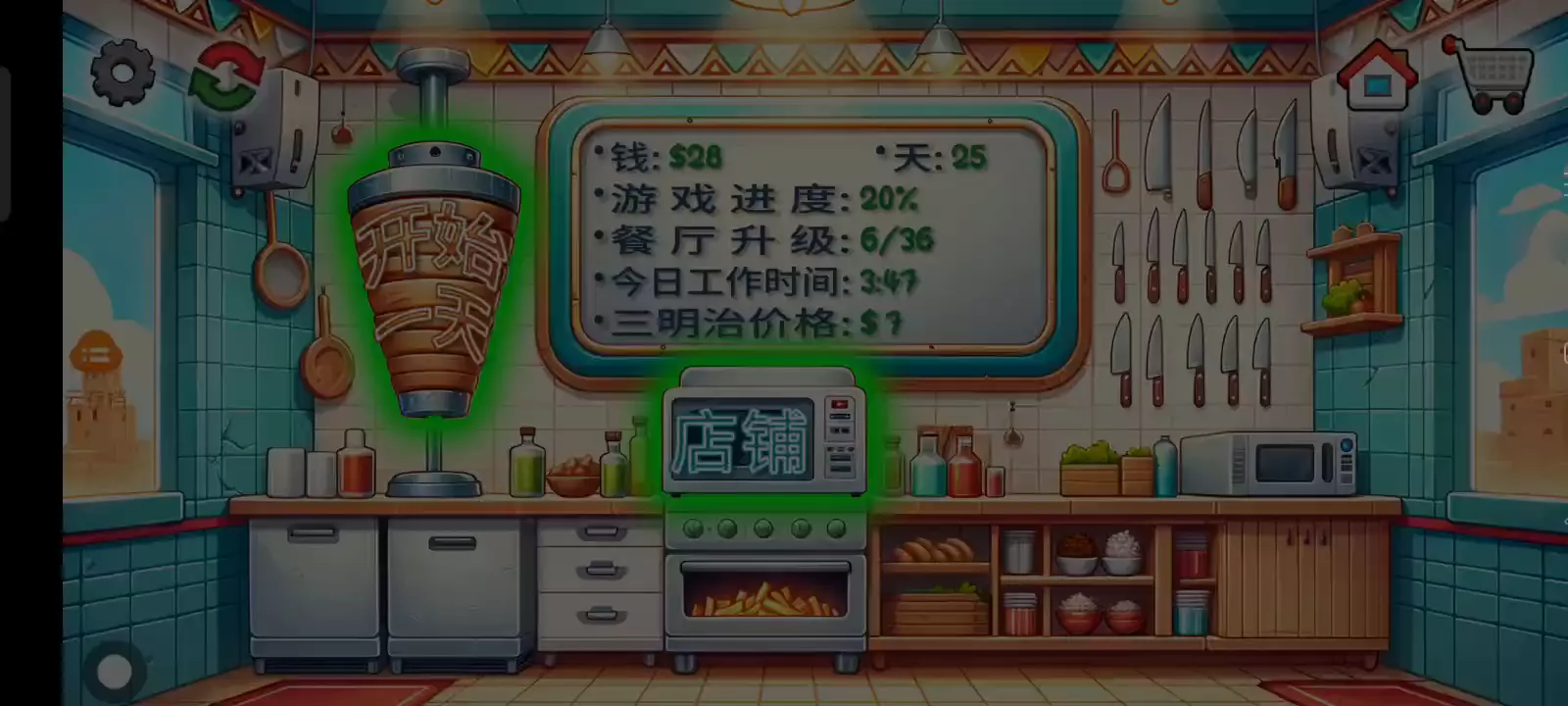 【更新日志】 1. 重置保存游戏进度的方法。 2. 永远不要错过绿袋子的奖品!(修复) 3. 三明治的价格写在了黑板上。 4. 以更高的价格出售沙威玛! 5. 更少的广告。 沙威玛传奇:真正的沙威玛体验! 你是否曾经想过经营自己的沙威玛餐厅是什么样的感觉?沉浸在沙威玛传奇中,这是一款最新且最激动人心的烹饪游戏,让你进入美食世界。精确地完成顾客的订单,让你的餐厅繁荣发展。 升级你餐厅的各个方面,从最新鲜的食材和最美味的沙威玛食谱到装饰和先进的厨房设备。与竞争餐厅一较高下,争取成为城里最好的沙威玛大厨! 游戏特色 - 提供你的语言版本:游戏完全提供中文版本,包括语音和文字。 - 有趣的卡通动画:享受将你的沙威玛餐厅变得生动的动画。 - 令人兴奋的游戏玩法和无尽的挑战:享受令人兴奋的游戏玩法和无尽的挑战。 - 逼真的模拟:体验设计得尽可能接近真实餐厅的游戏中的沙威玛大厨的生活。 - 真实的沙威玛准备:从烤架上切下沙威玛并真实地包裹三明治。 - 全面的升级:用顶级设备和装饰提升你的厨房,加快服务速度,让顾客满意。 - 可定制的沙威玛:让顾客根据他们的喜好定制他们的沙威玛三明治。 - 多样化的顾客基础:为无数的顾客服务,每个人都有自己的沙威玛偏好。 你能登上顶峰,成为最终的沙威玛传奇吗?你的技能和奉献精神将是成功的关键。