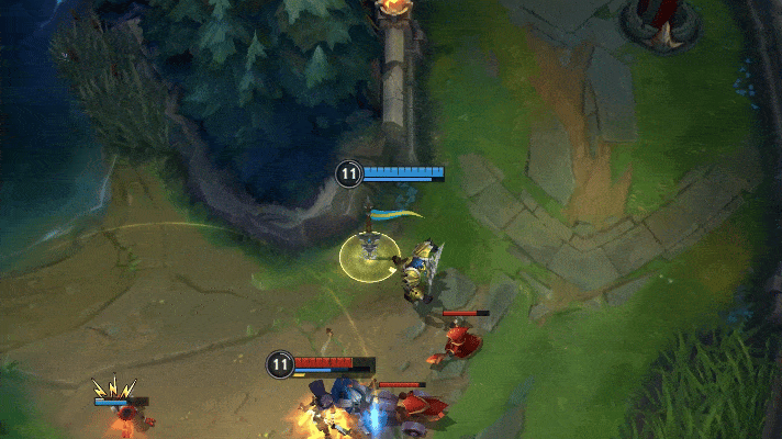 如果敌方英雄试图突进接近,可以用E(3)技能的手雷进行防守,将敌人减速或眩晕,配合炮台的输出轻松反打。